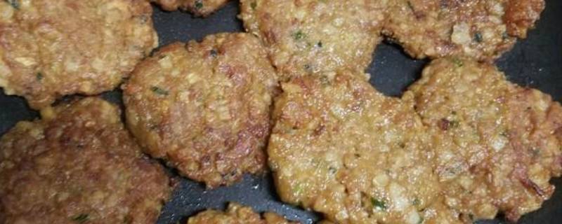 5、锅中放入适量的食用油,油温7成热后,取一小勺食材倒入锅中,煎至饼状。待两面煎至金黄后,即可捞出。