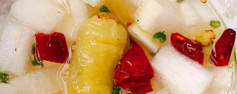 4、萝卜,腌出的水倒掉,放入调好的佐料,泡半天或第二天即可食用。