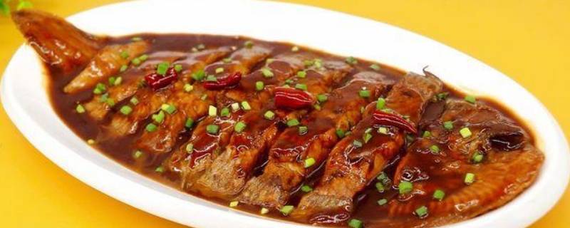 3、倒入500ml热水,将鱼平铺在平锅中煮熟,收汁后,撒上香葱段即可。