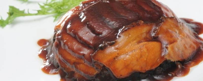 2、石首扣肉:以肥瘦红白相间五花肉为原料,经炸制,上糖色,以碗扣住蒸熟而成,因此取名千张扣肉。常见用腌菜,豆豉,梅干菜为扣肉做底。此菜色泽金黄,肉质松软,味道鲜香,肥而不腻,味道溶烂不糜,咸甜馥香浓郁。
