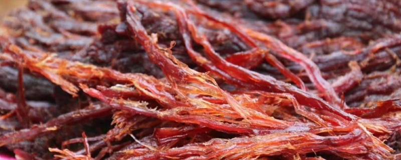 1、牛干巴:牛干巴是江口特色小吃中最经典也最有口碑的。采用优质的鲜牛肉为主料,配以植物油、白糖、精碘盐、花椒、白酒等为佐料,通过传统工艺精心烹制而成。成品色泽暗红,闻之香欲滴,入口肉酥味酣。
