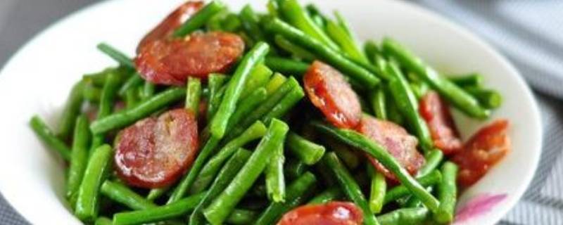 用料:腊肠一根、青豆角半斤、姜、蒜末、盐、鸡粉。
