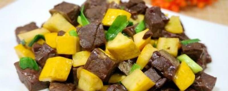 3、香蕉西葫芦、羊肺切成一厘米见方的丁。