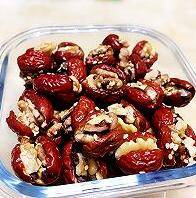 最佳答案1、准备食材:红枣半斤、核桃仁半斤、蜂蜜、芝麻。2、把每个枣切开,把枣核取出来。扒好的核桃仁放到烤盘,烤箱100度15分钟,烤熟、烤香。3、去核的枣里面夹上核桃仁。4、夹好后摆烤盘上,核桃面朝上。5、蜂蜜装到袋子里,剪个小口,每个核桃处挤上一些,最好挤到枣核核桃相交处,便于包裹粘黏。6、...