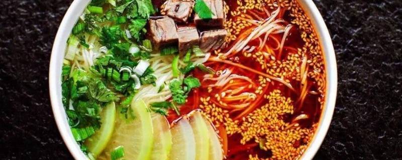 7、浆水面:浆水是将包菜、芹菜、苦渠、萝卜、土豆、黄豆芽等在沸水里烫过后,加酵母发酵而成的一种饮品,淡白色,味道偏酸,喝的时候可以加些白糖,夏季时饮用冰镇解渴。如果把浆水用辣椒和葱加油炝过,再加进拉面,就成了一碗西北有名的浆水面,在兰州非常常见。当然还要配上浆水面的好基友卤肉、排骨、猪蹄、凉菜、虎皮辣子们,这样才特别满福!