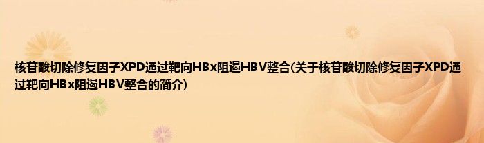 本文关于核苷酸切除修复因子XPD通过靶向HBx阻遏HBV整合的简介就讲解完毕,希望对大家有所帮助。