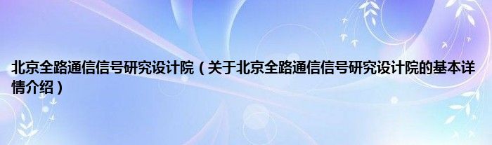 北京全路通信信号研究设计院(关于北京全路通信信号研究设计院的基本详情介绍)