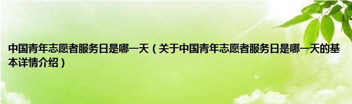 中国青年志愿者服务日是哪一天(关于中国青年志愿者服务日是哪一天的基本详情介绍)