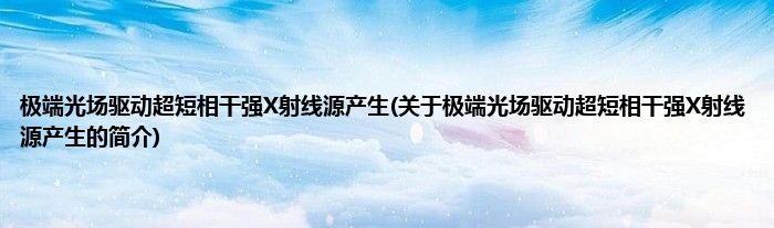 极端光场驱动超短相干强X射线源产生(关于极端光场驱动超短相干强X射线源产生的简介)