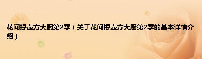 本文关于花间提壶方大厨第2季的基本详情介绍就讲解完毕,希望对大家有所帮助。