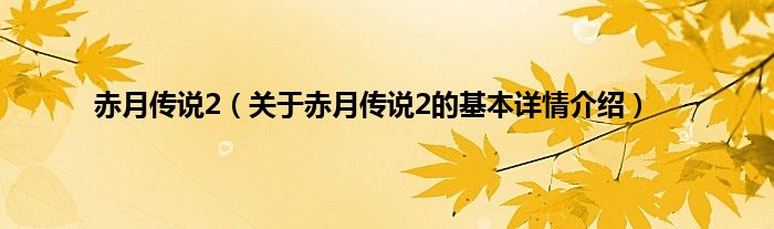 赤月传说2(关于赤月传说2的基本详情介绍)
