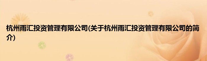 本文关于杭州雨汇投资管理有限公司的简介就讲解完毕,希望对大家有所帮助。