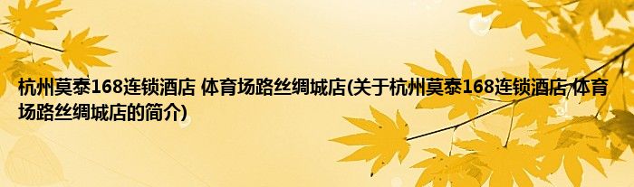 本文关于杭州莫泰168连锁酒店 体育场路丝绸城店的简介就讲解完毕,希望对大家有所帮助。