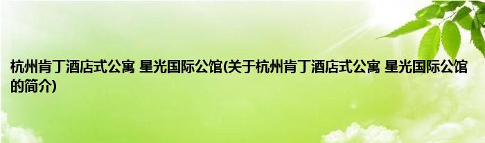 本文关于杭州肯丁酒店式公寓 星光国际公馆的简介就讲解完毕,希望对大家有所帮助。