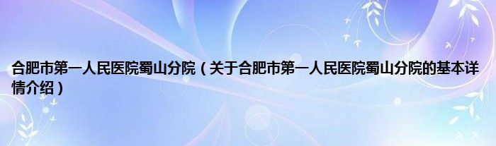 本文关于合肥市第一人民医院蜀山分院的基本详情介绍就讲解完毕,希望对大家有所帮助。