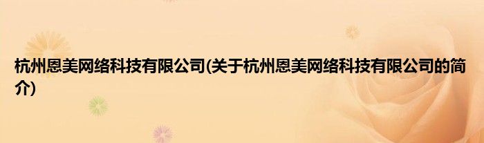杭州恩美网络科技有限公司(关于杭州恩美网络科技有限公司的简介)