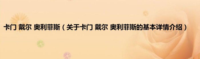 本文关于卡门 戴尔 奥利菲斯的基本详情介绍就讲解完毕,希望对大家有所帮助。