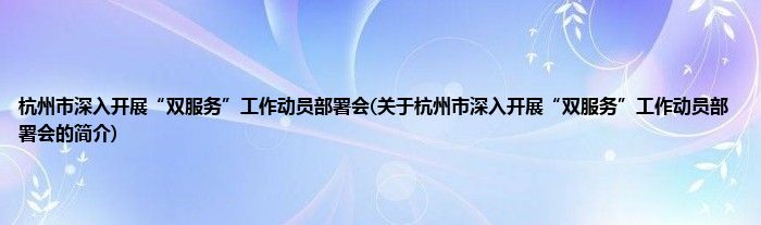 1、 杭州市深入开展“双服务”工作动员部署会是在杭州市召开的会议。