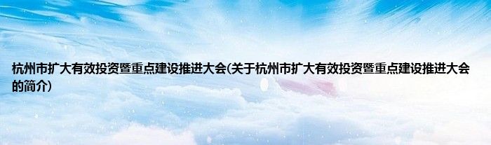 大家好,杭州市扩大有效投资暨重点建设推进大会,关于杭州市扩大有效投资暨重点建设推进大会的简介很多人还不知道,现在让我们一起来看看吧!