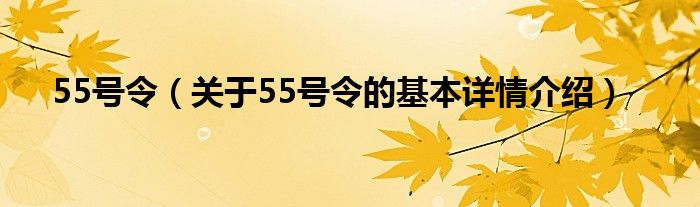 大家好我是小蝌蚪,55号令,关于55号令的基本详情介绍很多人还不知道,那么现在让我们一起来看看吧!