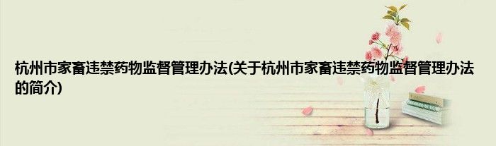 本文关于杭州市家畜违禁药物监督管理办法的简介就讲解完毕,希望对大家有所帮助。