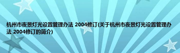 大家好,杭州市夜景灯光设置管理办法 2004修订,关于杭州市夜景灯光设置管理办法 2004修订的简介很多人还不知道,现在让我们一起来看看吧!
