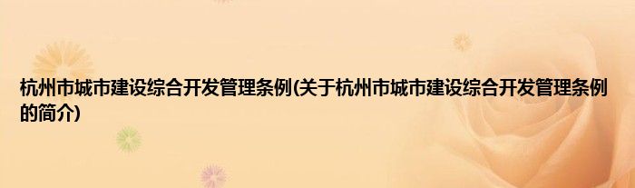 本文关于杭州市城市建设综合开发管理条例的简介就讲解完毕,希望对大家有所帮助。