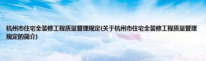 本文关于杭州市住宅全装修工程质量管理规定的简介就讲解完毕,希望对大家有所帮助。