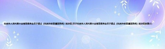杭州市人民代表大会常务委员会关于废止《杭州市收容遣送条例》的决定(关于杭州市人民代表大会常务委员会关于废止《杭州市收容遣送条例》的决定的简介)