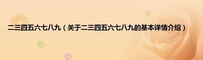 本文关于二三四五六七八九的基本详情介绍就讲解完毕,希望对大家有所帮助。