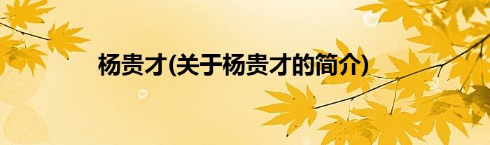 大家好,杨贵才,关于杨贵才的简介很多人还不知道,现在让我们一起来看看吧!