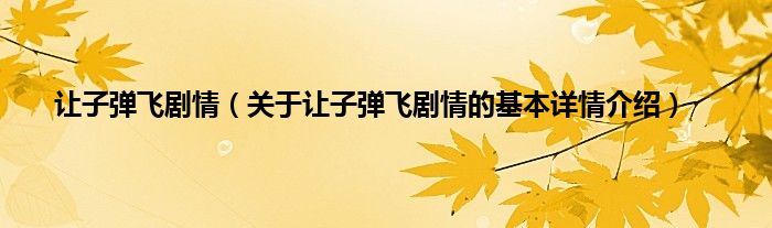 本文关于让子弹飞剧情的基本详情介绍就讲解完毕,希望对大家有所帮助。