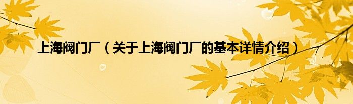 上海阀门厂(关于上海阀门厂的基本详情介绍)