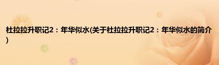 大家好,杜拉拉升职记2:年华似水,关于杜拉拉升职记2:年华似水的简介很多人还不知道,现在让我们一起来看看吧!