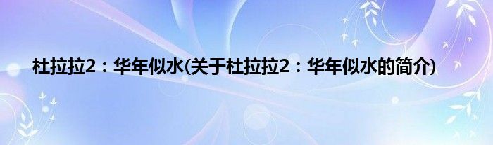 大家好,杜拉拉2:华年似水,关于杜拉拉2:华年似水的简介很多人还不知道,现在让我们一起来看看吧!