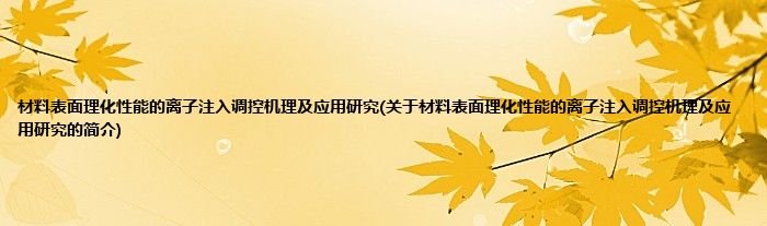 本文关于材料表面理化性能的离子注入调控机理及应用研究的简介就讲解完毕,希望对大家有所帮助。