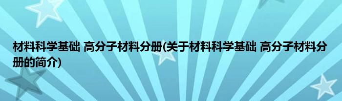 本文关于材料科学基础 高分子材料分册的简介就讲解完毕,希望对大家有所帮助。