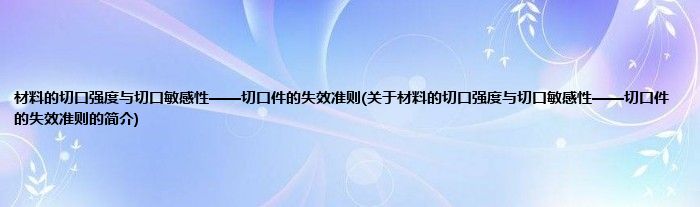 本文关于材料的切口强度与切口敏感性——切口件的失效准则的简介就讲解完毕,希望对大家有所帮助。