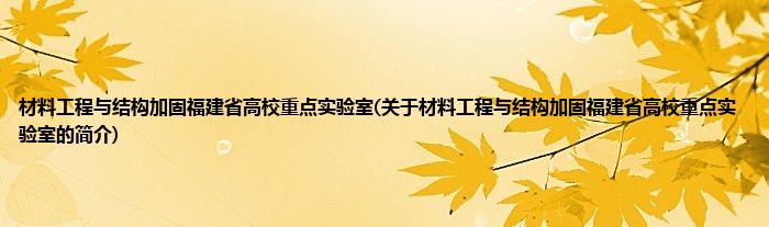 本文关于材料工程与结构加固福建省高校重点实验室的简介就讲解完毕,希望对大家有所帮助。