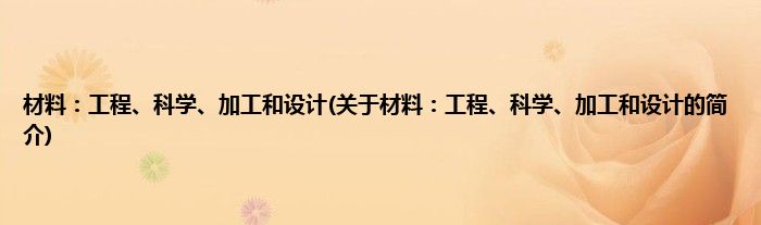 大家好,材料:工程、科学、加工和设计,关于材料:工程、科学、加工和设计的简介很多人还不知道,现在让我们一起来看看吧!