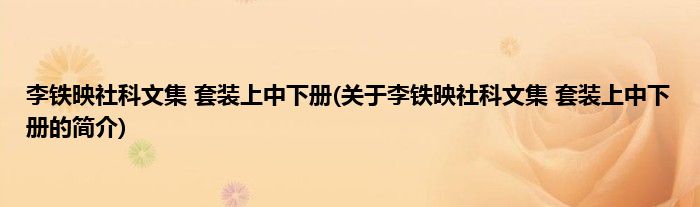 本文关于李铁映社科文集 套装上中下册的简介就讲解完毕,希望对大家有所帮助。