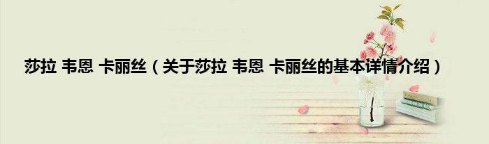 本文关于莎拉 韦恩 卡丽丝的基本详情介绍就讲解完毕,希望对大家有所帮助。