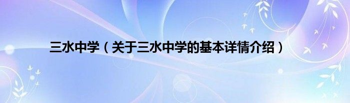 本文关于三水中学的基本详情介绍就讲解完毕,希望对大家有所帮助。