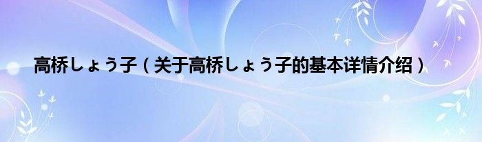 本文关于高桥しょう子的基本详情介绍就讲解完毕,希望对大家有所帮助。