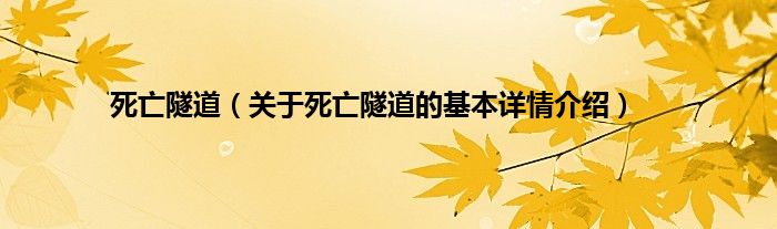 本文关于死亡隧道的基本详情介绍就讲解完毕,希望对大家有所帮助。