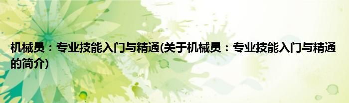 1、 《机械员:专业技能入门与精通》是2012年机械工业出版社出版的图书。