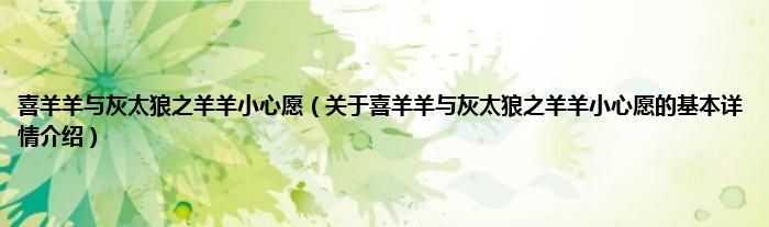 本文关于喜羊羊与灰太狼之羊羊小心愿的基本详情介绍就讲解完毕,希望对大家有所帮助。
