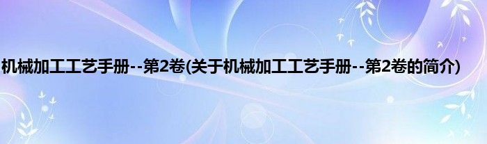 本文关于机械加工工艺手册--第2卷的简介就讲解完毕,希望对大家有所帮助。