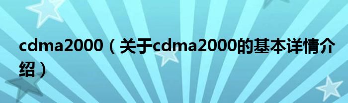 本文关于cdma2000的基本详情介绍就讲解完毕,希望对大家有所帮助。