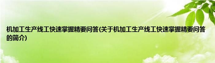 本文关于机加工生产线工快速掌握精要问答的简介就讲解完毕,希望对大家有所帮助。